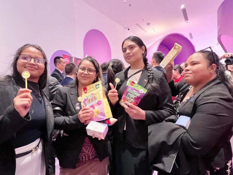 在阿麦斯皮乐士剥皮软糖展区,马恩多现场演示可“剥皮”食用的创意工艺。阿迪昂总统见后惊喜连连,直呼“unique!”,并欣然品尝。随行代表团中,总统女儿面对众多媒体记者,手捧皮乐士软糖大袋包装,难掩喜爱之情:“这款糖果非常美味,我特别喜欢。”