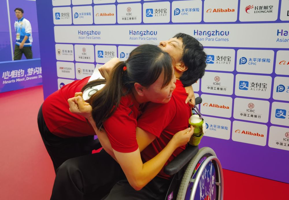 37岁的何丽萍就是其中之一,她是BC3级运动员杨贝贝的竞赛辅助人员。在25日的女子个人BC3决赛上,她们获得了一枚宝贵的金牌。